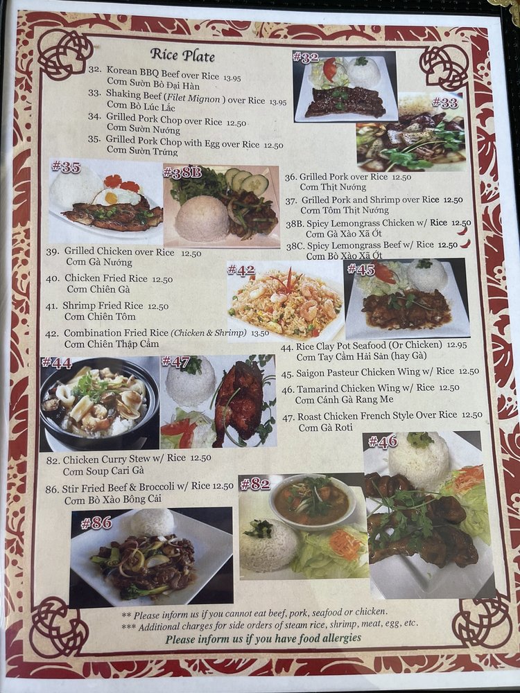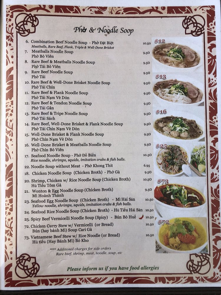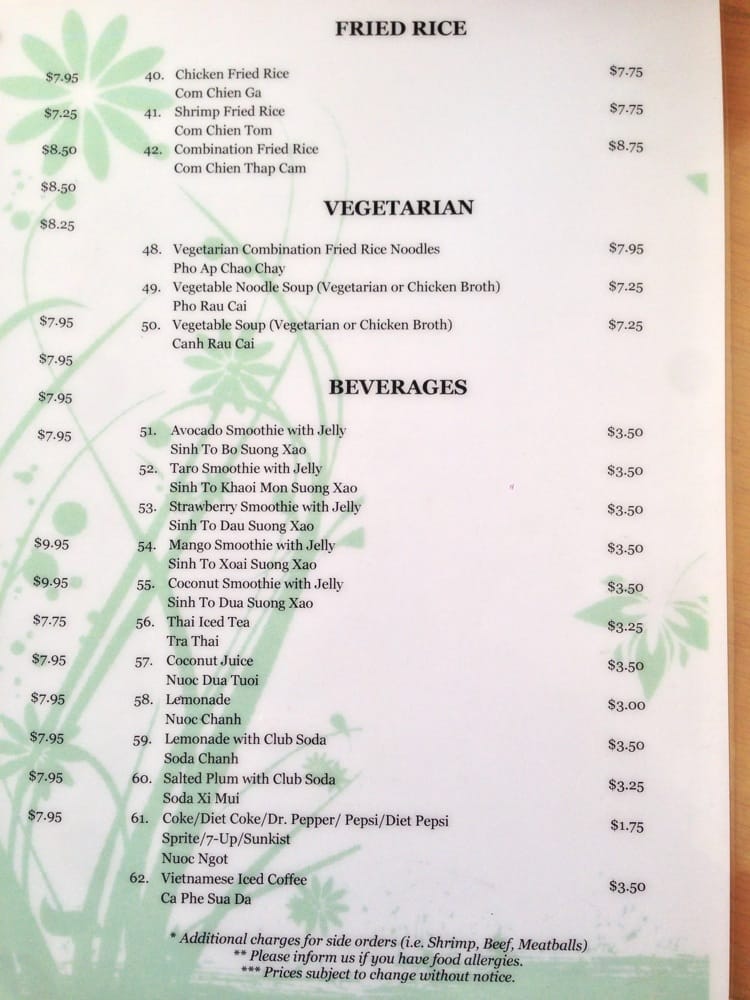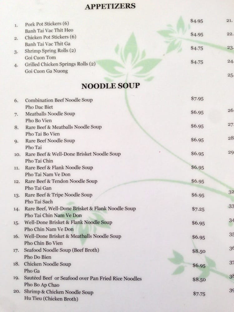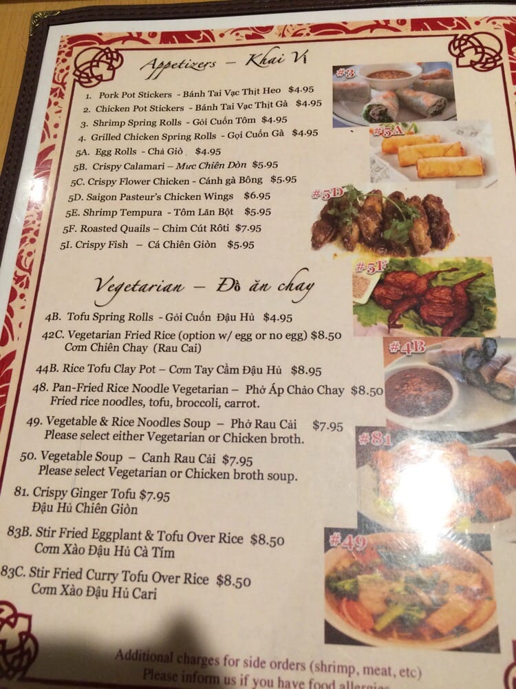 The menu at Pho Saigon Pasteur features tantalizing appetizers like Pork Pot Stickers and Shrimp Spring Rolls, along with vegetarian delights like Tofu Spring Rolls and Vegetable Soup. Don't miss out on their signature Pho and Noodle Soup dishes, including the Combination Beef Noodle Soup and Rare Beef Noodle Soup.